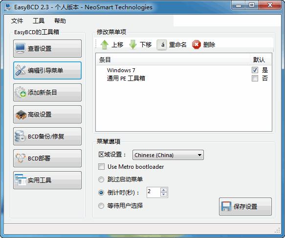 先选择正常的引导菜单进入系统,尝试下载 EasyBCD 工具进行编辑当前引导菜单,以正常菜单显示即可。