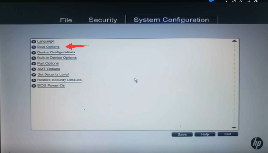 2、顶部三个菜单移到System Configuration上面,列表中点击Boot Options进入。如下图:
