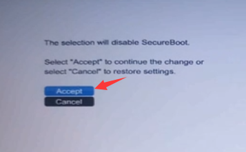 3、找到SecureBoot然后按回车去掉勾选,禁用安全启动。