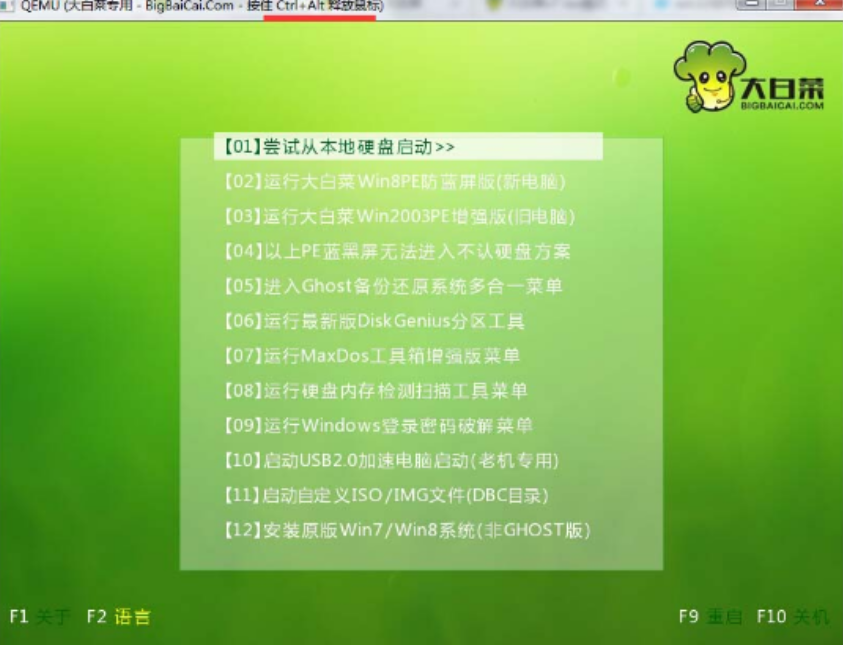 软件版本:大白菜装机版