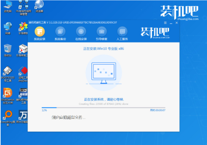 5、在pe系统中我们打开装机吧装机工具,选择我们需要安装的win10系统,点击安装到电脑c盘上。