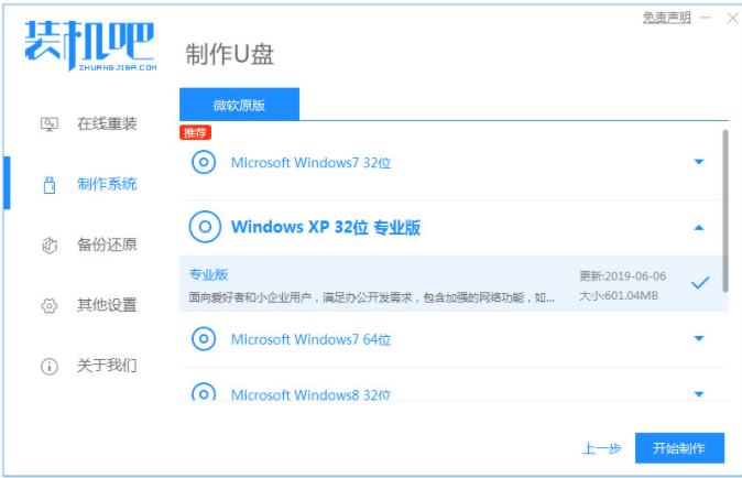 1、下载安装装机吧一键重装系统工具并打开,插入一个8g以上的u盘,选择u盘重装系统模式,点击开始制作。