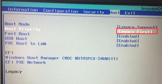 5、再把Boot Priority设置成Legacy First,按F10弹出窗口选择yes回车。
