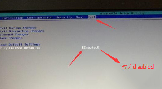 2、转到Exit,把OS Optimized Defaults设置为Disabled或Other OS。