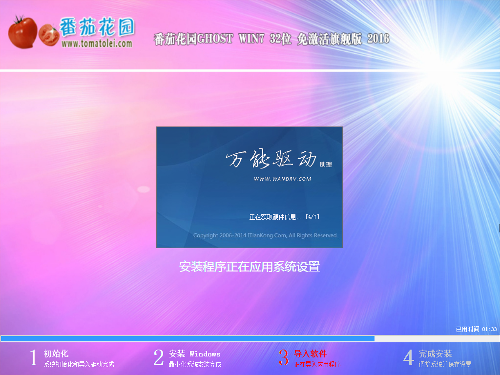 番茄花园电脑城装机版具有更安全、更稳定、更人性化等特点。集成最常用的装机软件,集成最全面的硬件驱动,精心挑选的系统维护工具,加上萝卜独有人性化的设计。是电脑城、个人、公司快速装机之首选!拥有此系统,您也可以轻松成为装机高手!