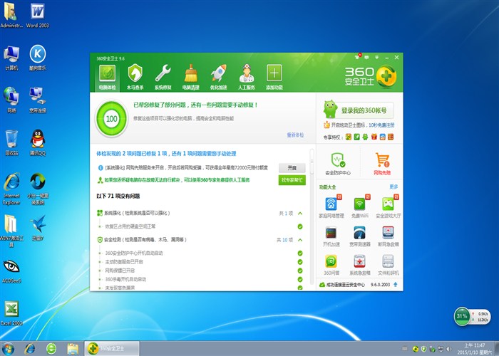 小贴士:光盘经过检测安全无毒,PE中的部分破解软件可能会被个别杀毒软件误报,请放心使用。