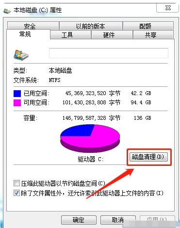步骤二:在窗口中,点击磁盘清理。如下图所示: