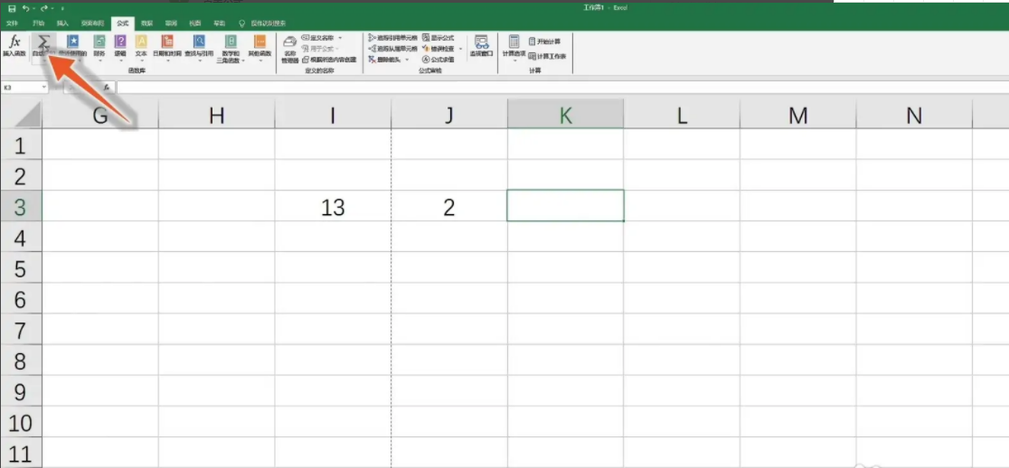 2、在公式里面的分栏找到,自动求和的按钮。点击它应用。