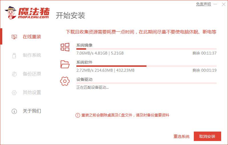 3、等待软件下载搜集安装系统所需要的镜像、驱动等资源。