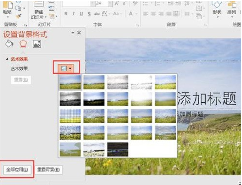 3、然后点击“艺术效果”对效果图进行选择,最后点击“全部应用”就可以了。