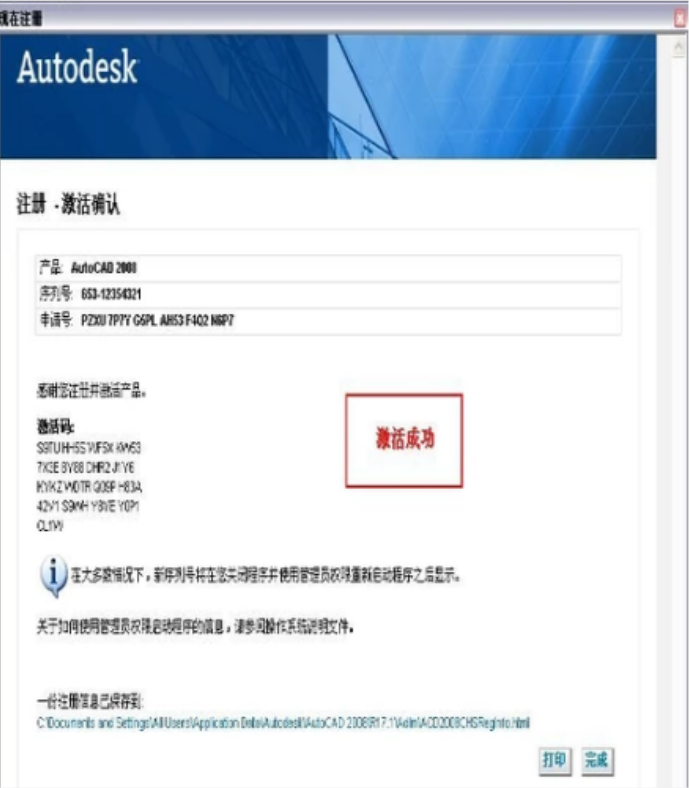 6、最终激活成功,点击完成。在此进入软件后AutoCAD2008就可以运行了。
