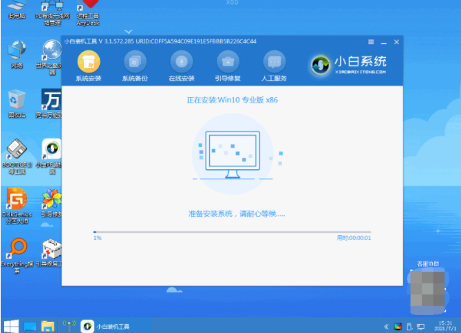 5、当我们的电脑进入pe系统后,双击打开小白装机工具开始自动安装windows10系统,请大家耐心等待。