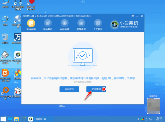 6、提示系统安装完成后,点击立即重启电脑即可。
