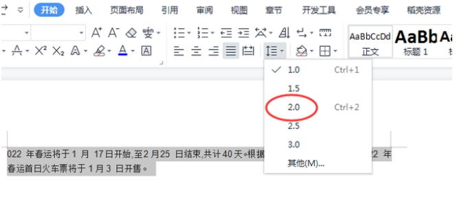 2、然后选择想要的行间距大小,这里小编勾选2。