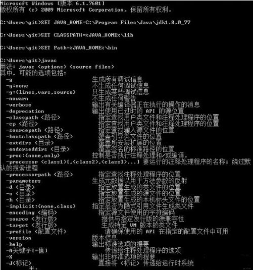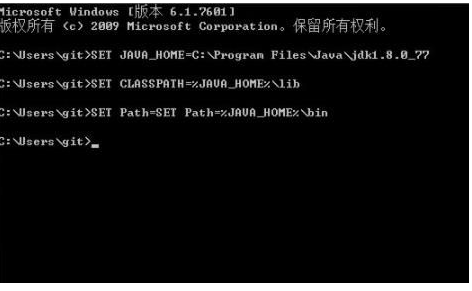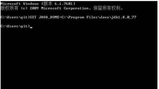 2、接着输入:SET JAVA_HOME=C:\Program Files\Java\jdk1.8.0_77,自己要按照自身的jdk安装文件目录来开展填好。