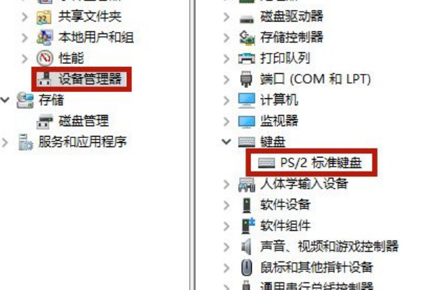 2、选择设备管理器,在设备管理器页面左键点击键盘,会出现下拉选项。