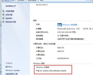 2.在计算机属性页的最下方有激活信息,点击这个激活链接。