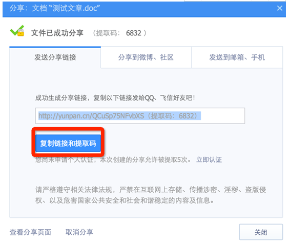 6、 在出来的界面中点击“复制链接和提取码”。