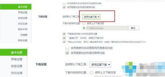 2、将选择默认下载工具从“使用内建下载”切换到使“用迅雷下载”,切换后会有系统提示,点击“允许”,然后再设置回“使用内建下载”。