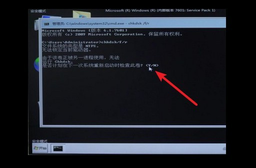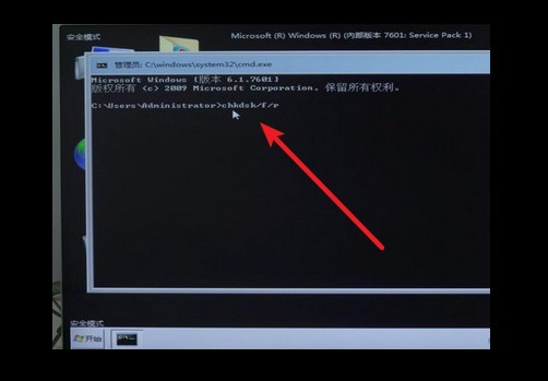 方法一:进入安全模式输入chkdsk/f/r修复错误