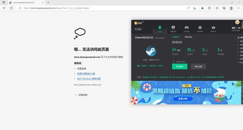 5、登入后可能会出现打开商店出现以下打不开的场景,同时我们只需打开加速器即可浏览商店,购买自己想要买的游戏了。
