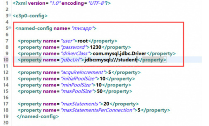 5、修改连接数据库配置文件,其路径在/src/c3p0-config.xml。