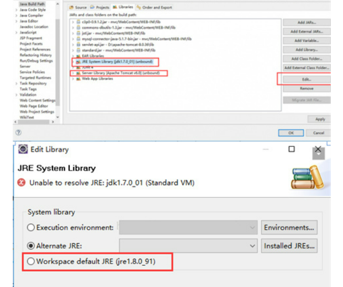 4、导入java web项目出现JRE System Library(unbound)和Server