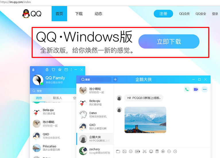 3、这里我们才看到原来是进入的是腾讯QQ下载页面,左上角显示QQ全新版本,点击下载按钮进行全新安装。